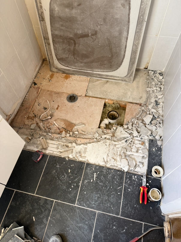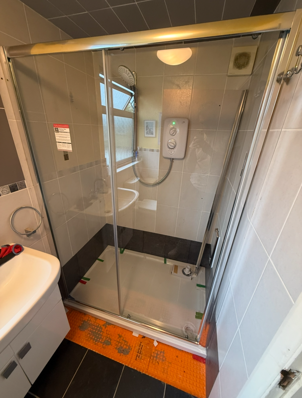 Our team recently completed a shower refurbishment project at a home in Oxford. The work began with the careful removal of the old tiled floor within the shower cubicle, along with a row of wall tiles that had become worn over time.